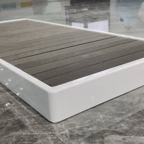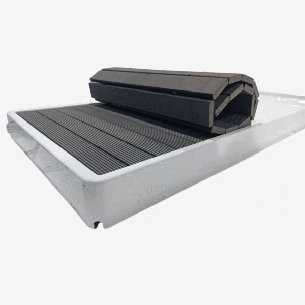 Med sina generösa mått på 131 × 61 × 10 cm och en vikt på 30 kg är instegsmattan stabil, rymlig och konstruerad för regelbunden användning i fuktiga miljöer. Den ligger stadigt på plats, har en snabbtorkande yta och är enkel att rengöra.